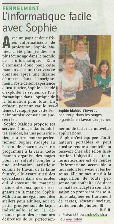 Vous découvrirez ici les articles parus et les photos des différentes activités.